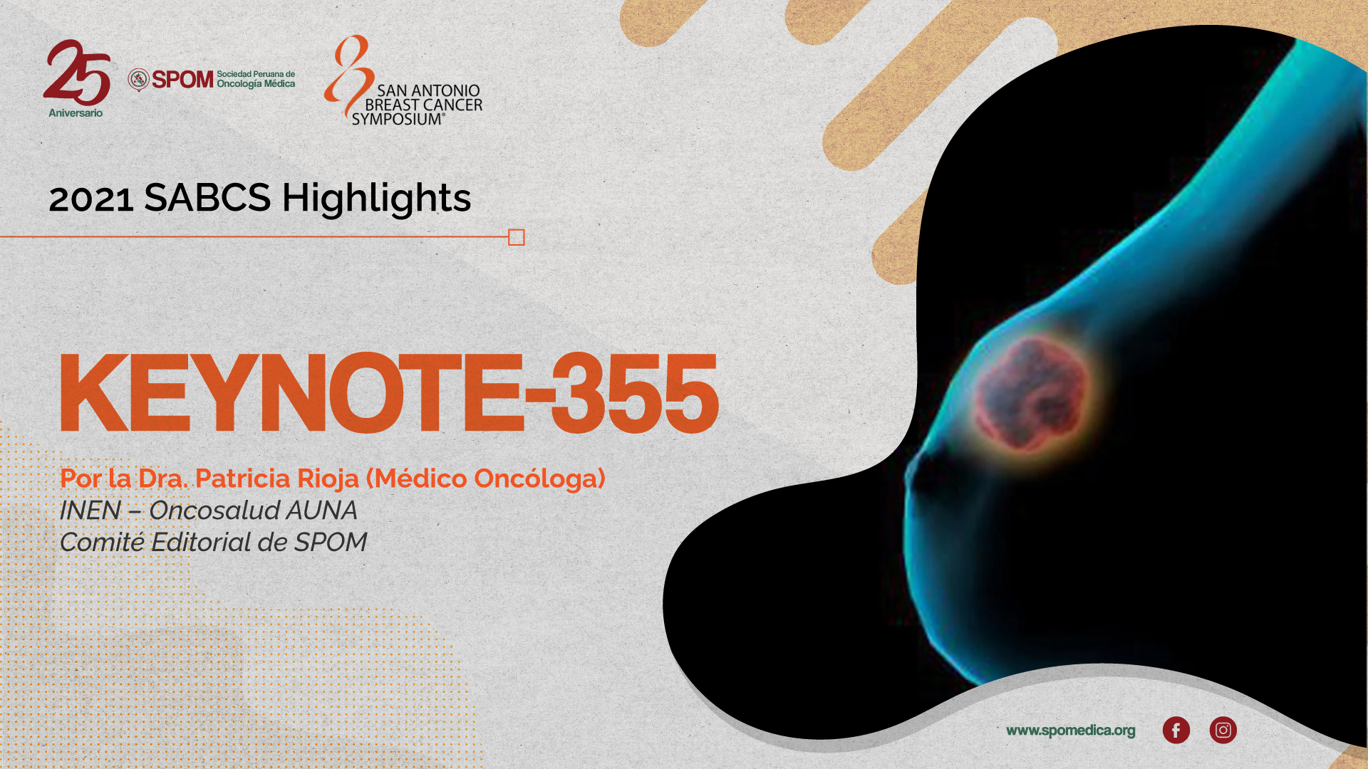 Por la Dra. Patricia Rioja (Médico Oncóloga) INEN – Oncosalud AUNA Comité Editorial de SPOM El Dr. Cescon Cortés presentó en el congreso de SABCS